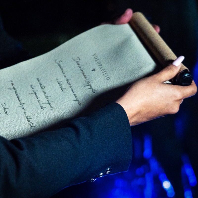 El Gran Final. El mayordomo entrega un pergamino encadenado. LA LLAVE abre las palabras perfectas, en esta noche perfecta. La música llena la brisa de amor, luces de pirotecnia reflejan en las olas iluminando la noche.